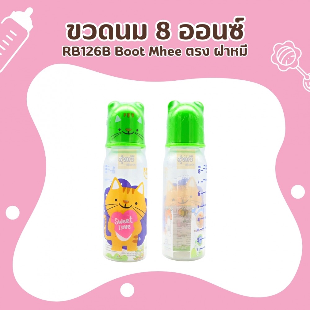 ขวดนม 8ออนซ์ RB126B Boot Mhee ตรง ฝาหมี(แพค)